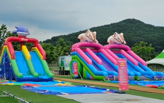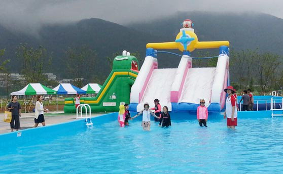 ② 주차 후 직진하면 바로 핑크색 현수막 설치된 물놀이장 입구 도착