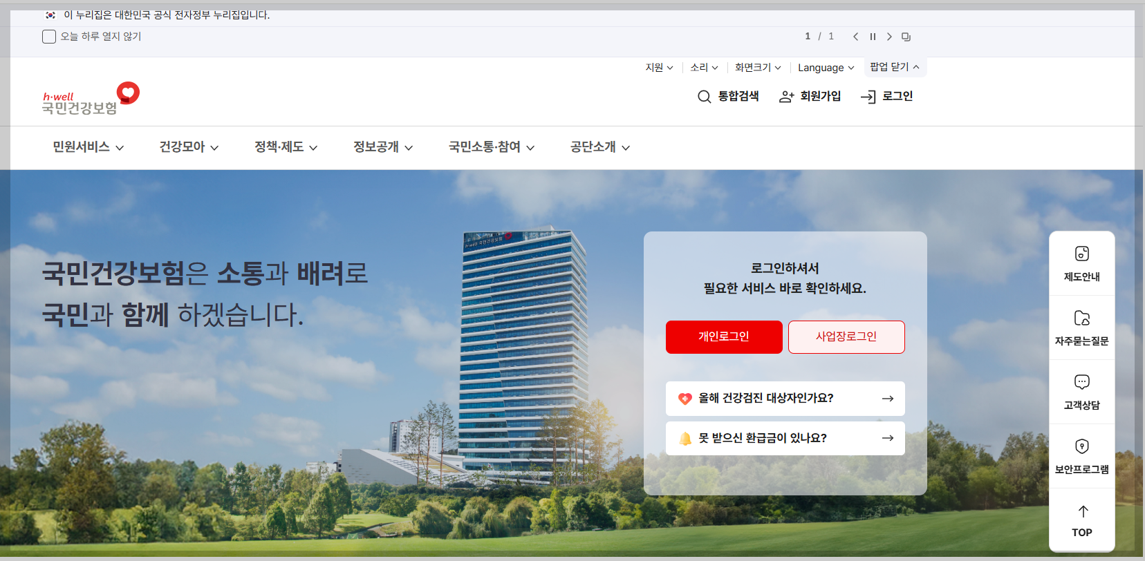 👉 국민건강보험공단 홈페이지 사이버 민원센터 온라인 신청방법