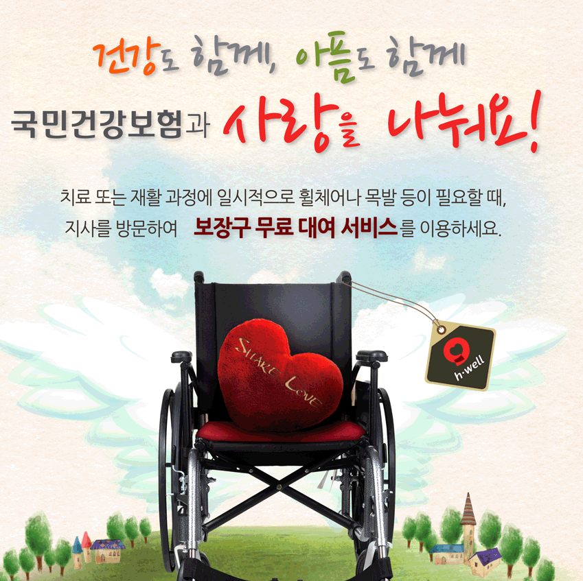 국민건강보험공단은 전국 110개 지사에서 보장구 무료대여 서비스를 운영합니다.
