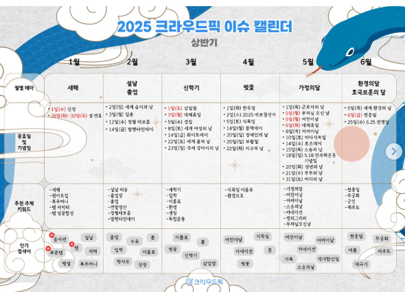 - 크라우드픽에서 매월 발행하는 ‘이슈 캘린더’ 참고
