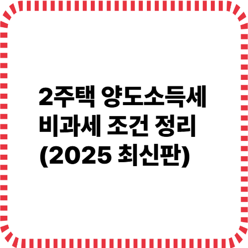 2025년 2주택 양도소득세 비과세 조건은 복잡하지만, 잘 활용하면 큰 세금 부담을 줄일 수 있는 중요한 절세 수단입니다.