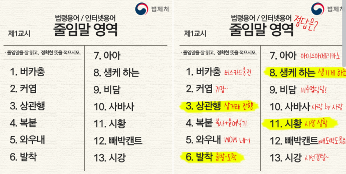 1. 요즘 제일 많이 쓰는 줄임말 TOP 20