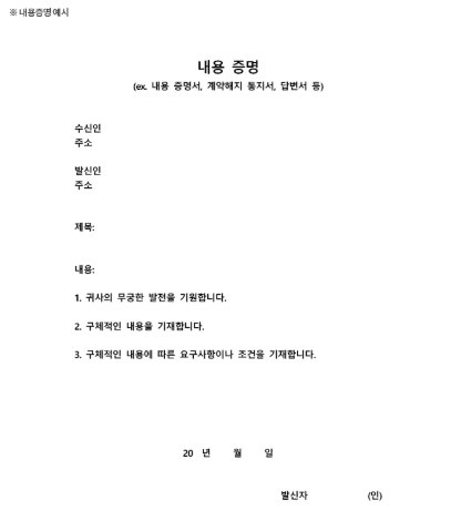 - 제목: 문서 상단에 '내용증명'이라고 명시합니다.