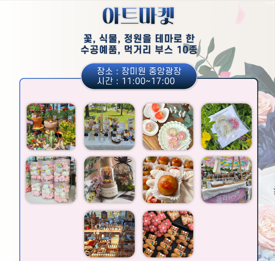 - 🧺 체험: 꽃갈피, 테라리움, 비누·목공 만들기 등