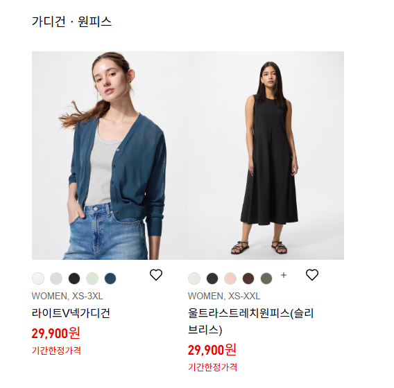 🧵 라이트 가디건 & 슬리브리스 원피스 (₩29,900 균일가)