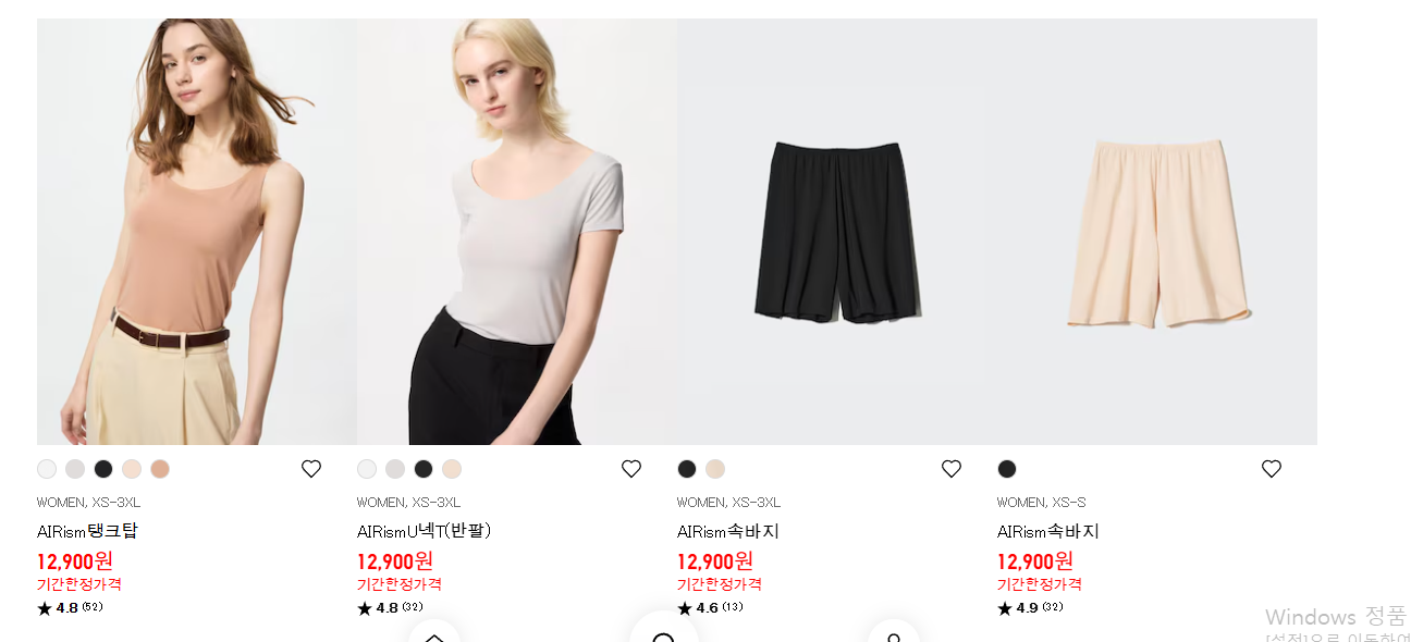 • AIRism 시리즈, 감탄팬츠, 린넨 셔츠 등 인기 제품 다수 세일 중