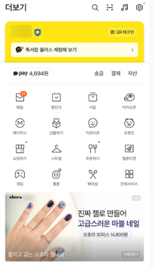 • 방법: ‘더보기’ → ‘선물하기’ → 상대 선택 → 아무 선물 고르고 결제 직전까지 진행