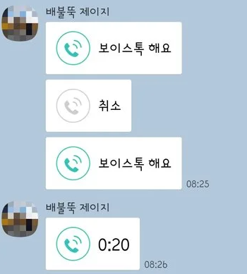 • 방법: 상대방 채팅창 → 오른쪽 상단 📞 아이콘 → 보이스톡 시도