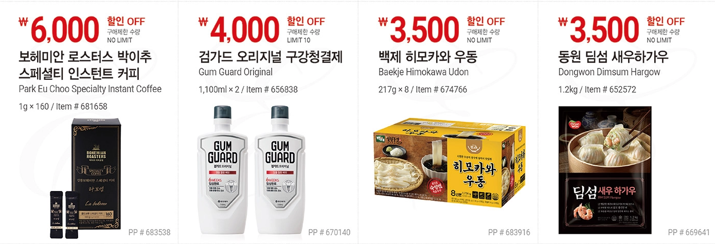 - 코스트코: 식품, 생활용품, 가전 등 다양한 품목 할인