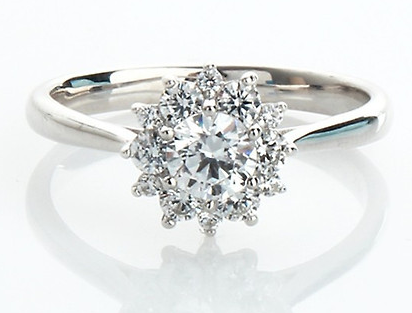 - 헤일로 세팅: 중앙의 다이아몬드를 작은 다이아몬드로 둘러싸는 디자인으로, 다이아몬드를 더 크게 보이게 합니다.