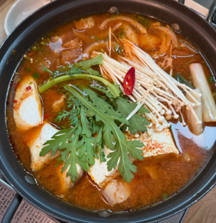 얼큰하고 기름진 국물로 끓여낸 이 찌개는 입안 가득 따뜻한 위로를 주는 음식입니다.