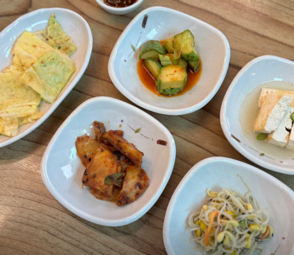 - 배추전, 감자조림, 가지나물, 두부부침 등 5~6종의 정갈한 반찬