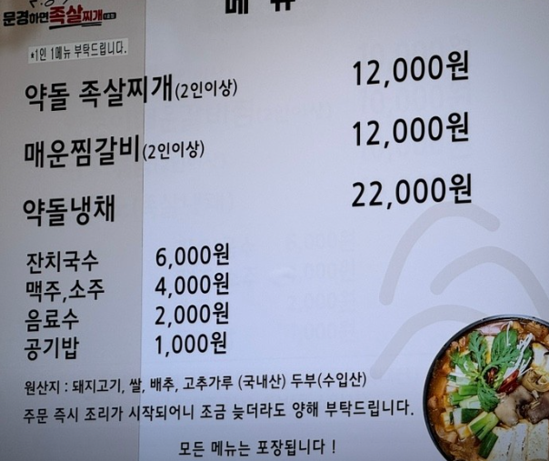 | 주재료 | 목살 or 삼겹살 | 족살(앞다리+껍데기) |