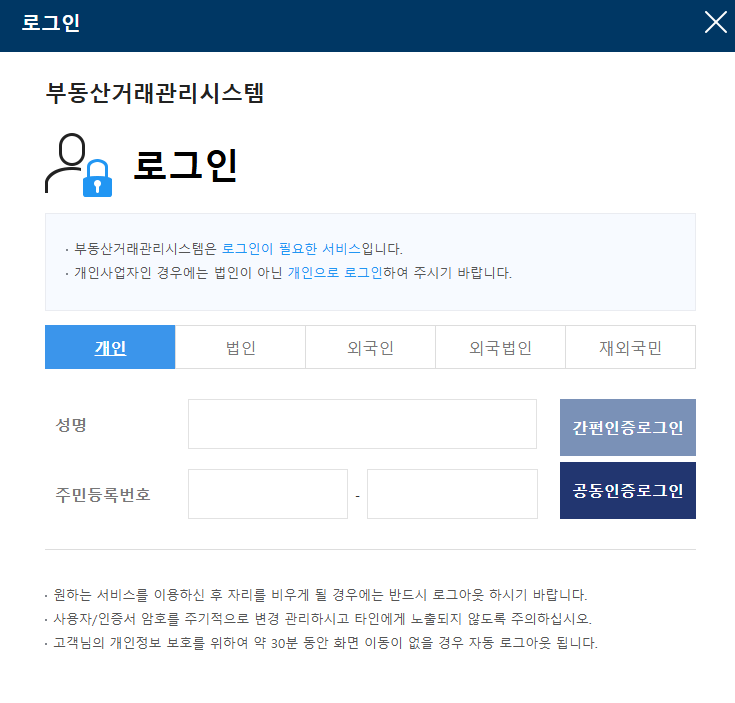 • 신고 사이트: 부동산거래관리시스템바로가기 클릭