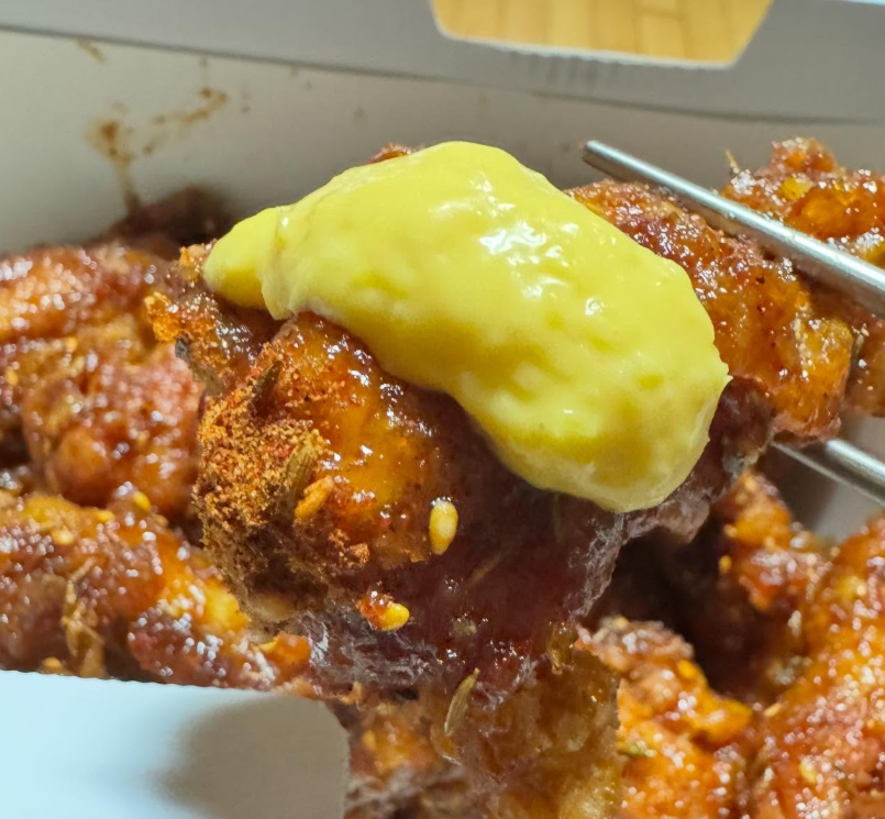 • 맛 포인트 : 한 입 베어 무는 순간, 뜨끈한 김 사이로 쯔란의 짙은 허브·커민 향이 폭죽처럼 퍼지며 콧속을 기습!. 바삭한 튀김옷이 부서질 때 달콤한 시즈닝이 먼저 혀를 간지럽히고, 곧이어 짭짤한 간장 베이스와 살짝 스파이시한 끝맛이 밀물·썰물처럼 삼단 레이어로 몰려오죠.  아..침나와.. 뼈 주변 촉촉한 살코기를 씹을수록 허브 아로마가 재점화되며 입안에서 ‘양꼬치+치킨’ 믹스테이프가 재생되는 느낌!!!    거기에 쫀득떡이 맥주 거품처럼 마무리를 깔끔하게 컷 해줍니다.  솔직히 한 조각만으로는 감질나서, 맥주를 끝없이 부르는 맛.....