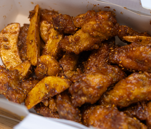 • 메뉴 구성 : 윙+봉 14~16조각(매장 편차) + 웨지감자 + 쫄깃떡.