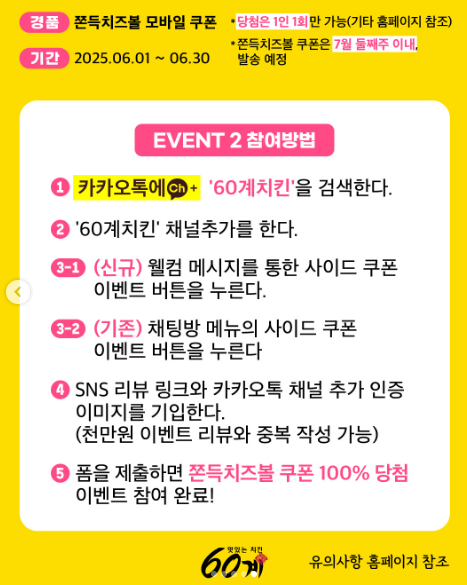 자세한 유의사항은 60계치킨 공식 홈페이지를 꼭 확인하세요!