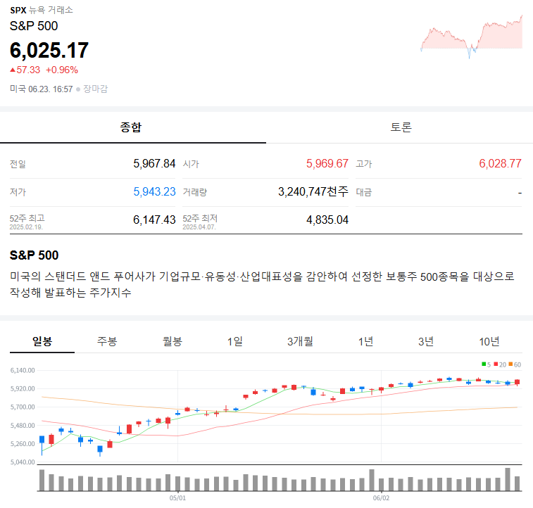 2025년 6월 기준, s&p500 지수는 연초 대비 약 +14.3% 상승(2025.01 기준 4,769pt → 현재 5,452pt 전후).